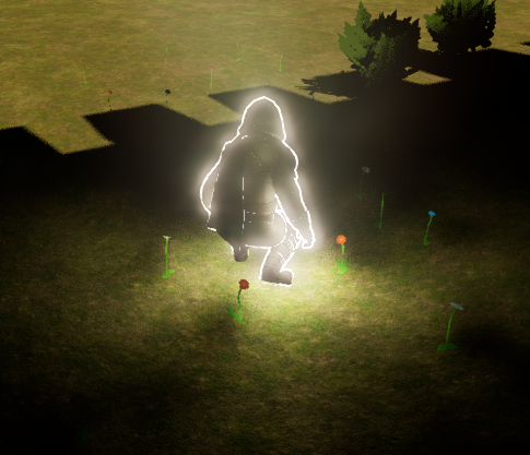 As far as VFX goes, I kept things quite lite, as I did not want to make the game too intensive to load. Some things I could do with VFX I also found some routes to mimic the behavior through other means, or through post processing. The main visual effect is the player's outline when they are hidden. I really liked how it looked, and the glow doubles as a method to navigate in the stark dark shadows. I feel like it also lends into the more fantasy/medieval sort of theme, as it's like a supernatural ability your character might have while they are in shadows, is to become undetectable.